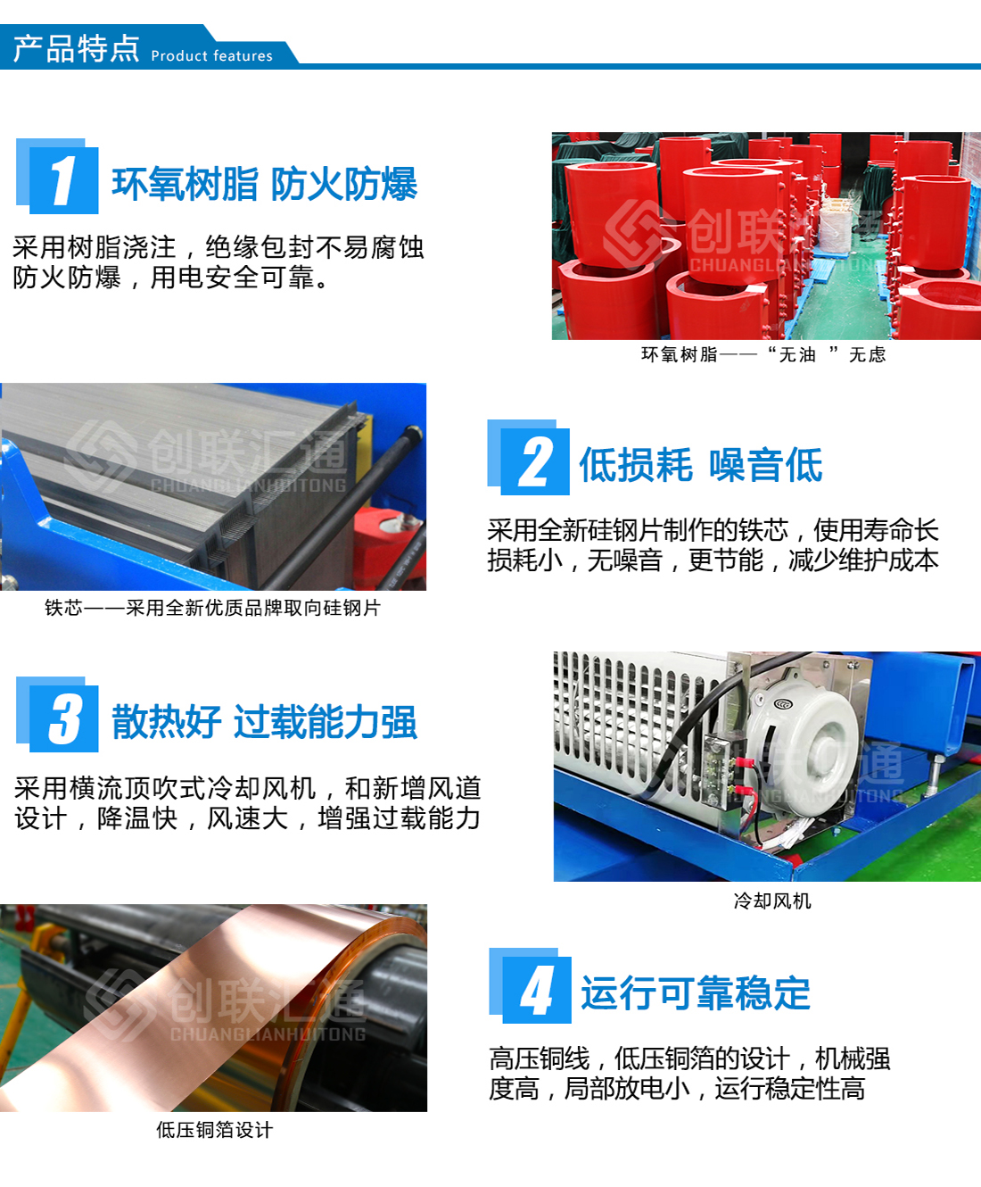 答 創(chuàng)聯(lián)匯通主營產(chǎn)品有:S11(13)、S20(22)新能效及SH15系列10KV級~110KV級油浸式電力變壓器、有載調(diào)壓電力變壓器、非晶合金變壓器、SC(B)10 (13)、SG(B)10(13)及SC(B)14(18)新能效系列干式變壓器、開關(guān)柜及組合式變壓器、箱式變電站及防竊電、礦用、整流、電爐等特殊電力變壓器。產(chǎn)品廣泛用于電力、核電站、交通、礦山、冶金、建...